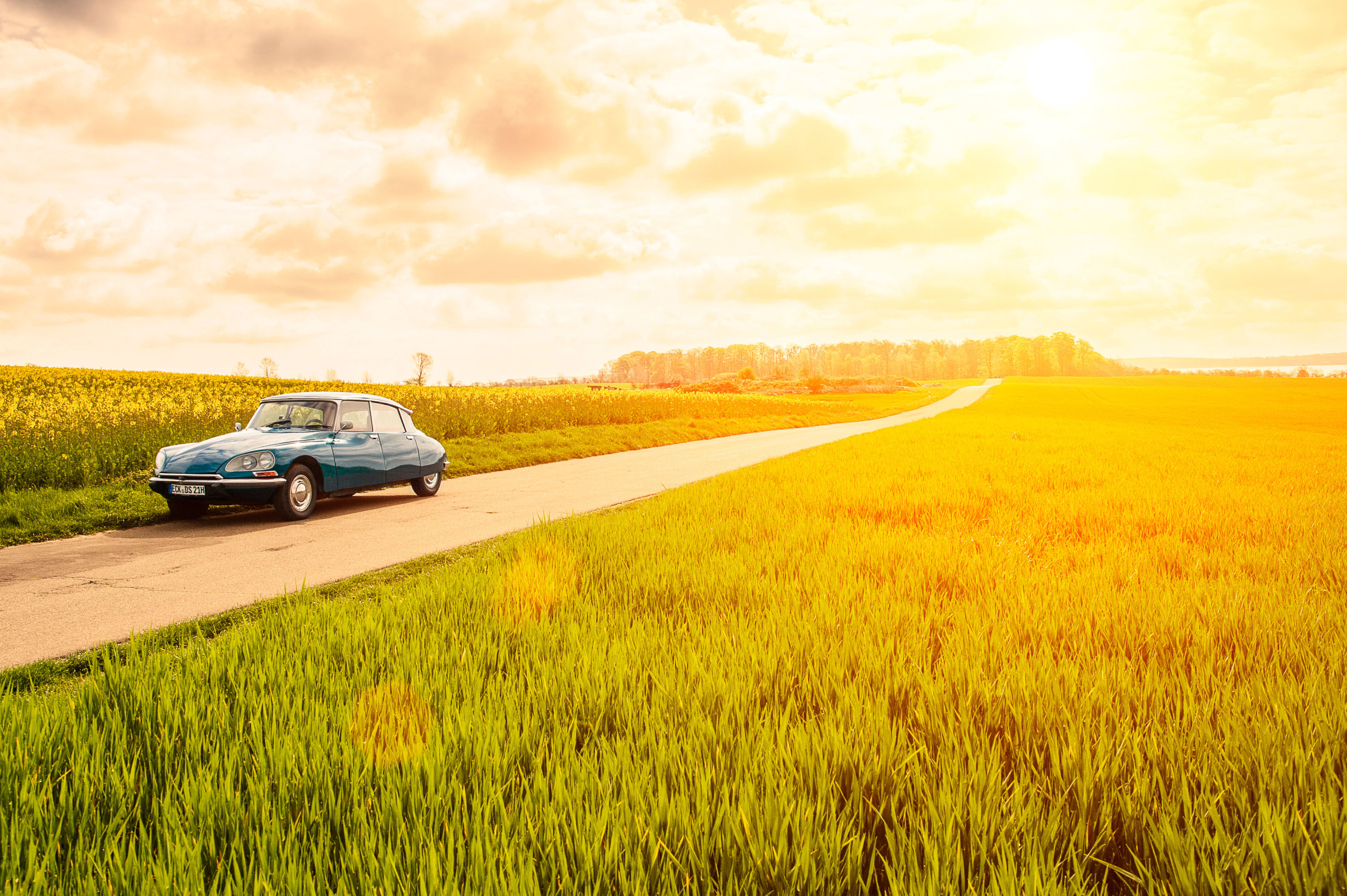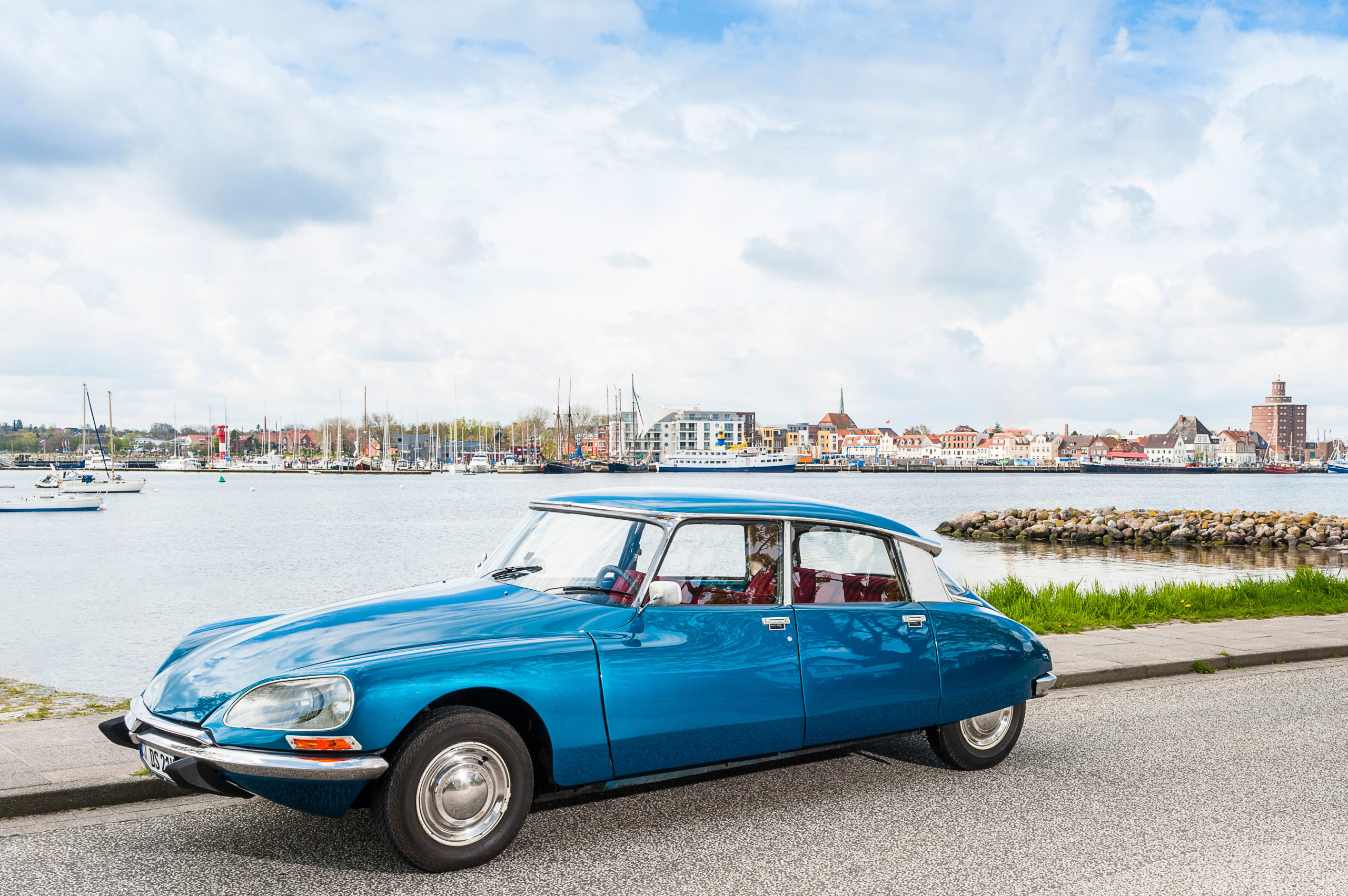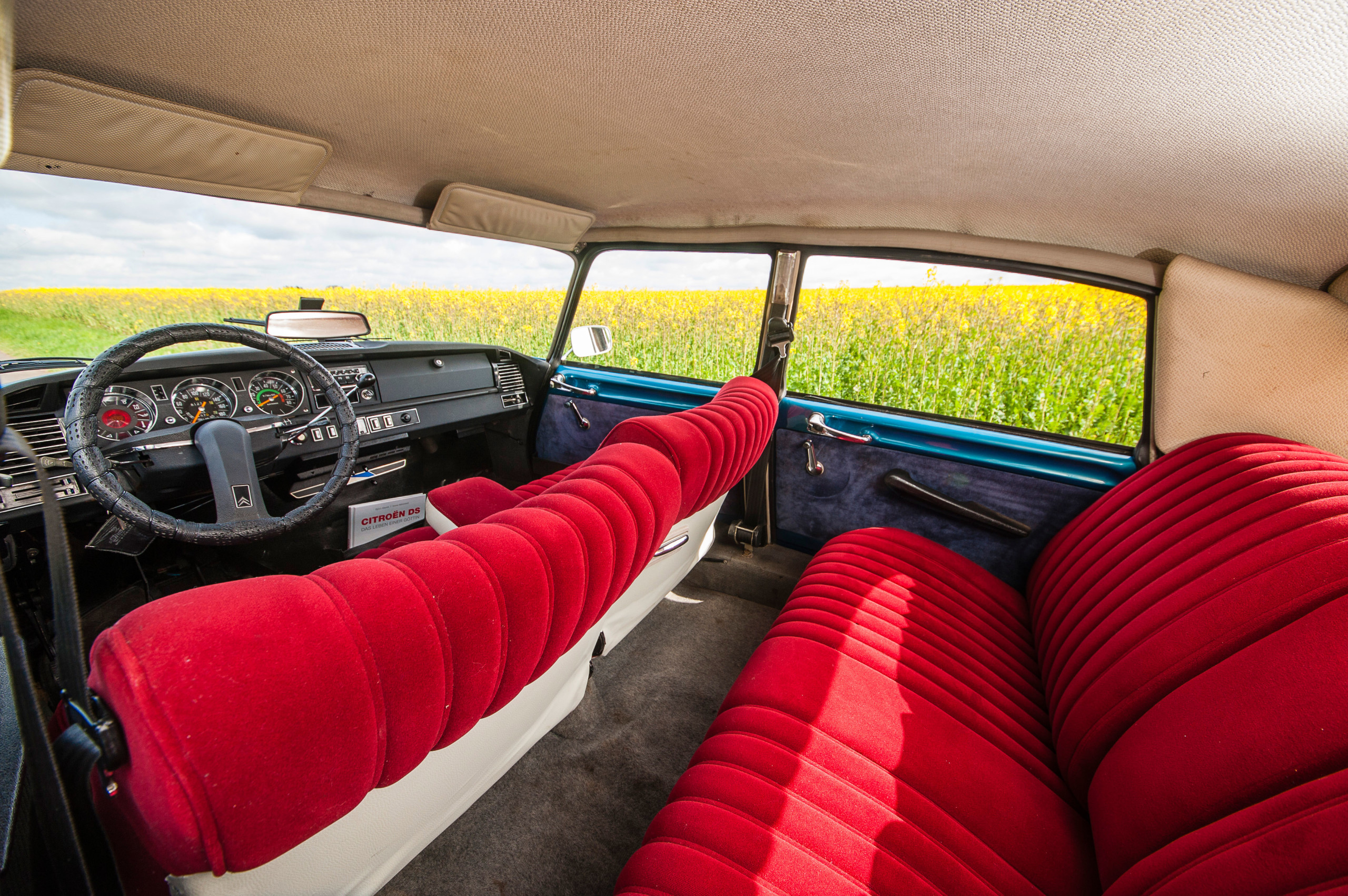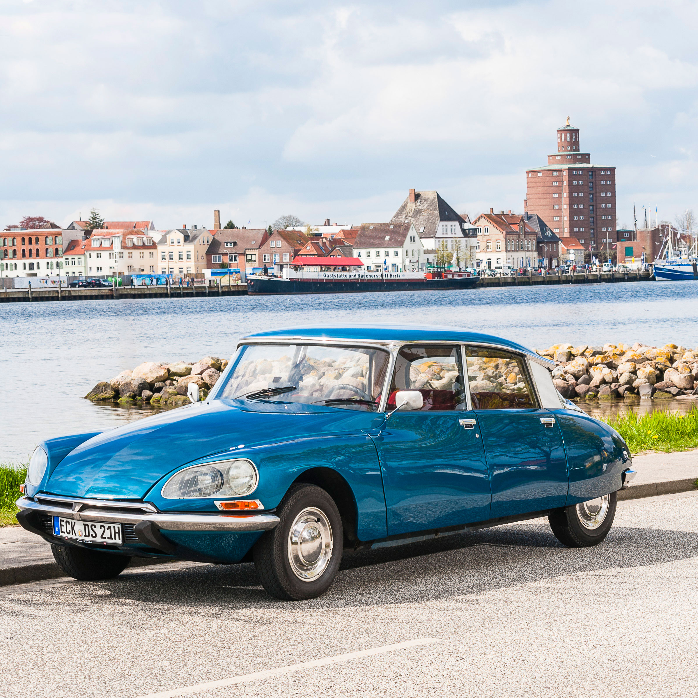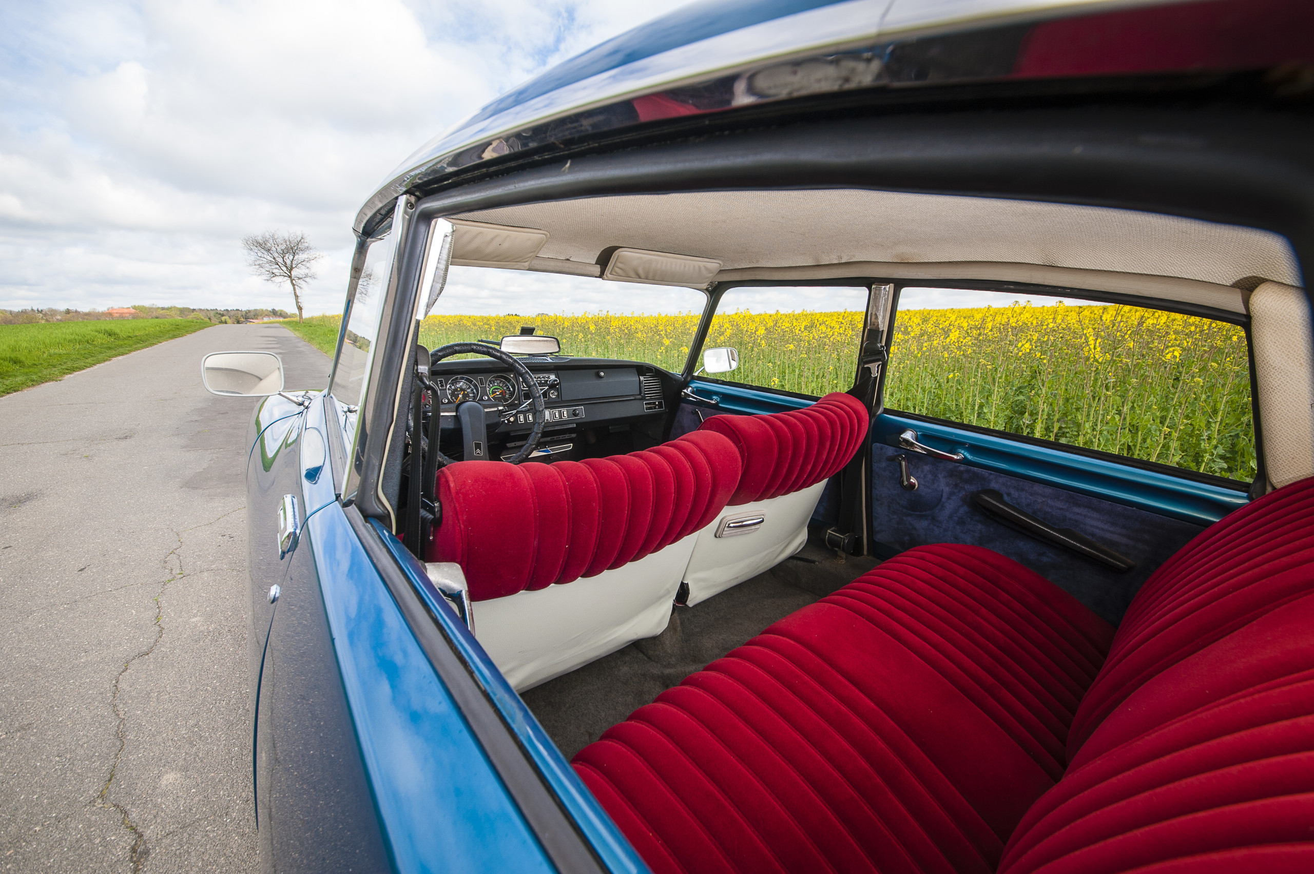 Steigen Sie ein, versinken Sie im roten Velours und drehen Sie Ihre Runden durch das schöne Schleswig-Holstein... die Rede ist von unserer Citroën DS D-Super5, Baujahr 1974. Die "Blaue Göttin" lädt zum Dahingleiten ein. Auf ihre ganz eigene Art und Weise entschleunigt sie das Fahren und schenkt den Passagieren die Möglichkeit, vorbeiziehende Landschaften und über 40 Jahre alte Fahrzeugtechnik zur gleichen Zeit zu genießen. Ein einzigartiges Gefühl. Deshalb ist die Göttin ein stark gefragter Gast auf allen möglichen Events und Hochzeiten – und oft der Hauptdarsteller auf unvergesslichen Spazierfahrten.